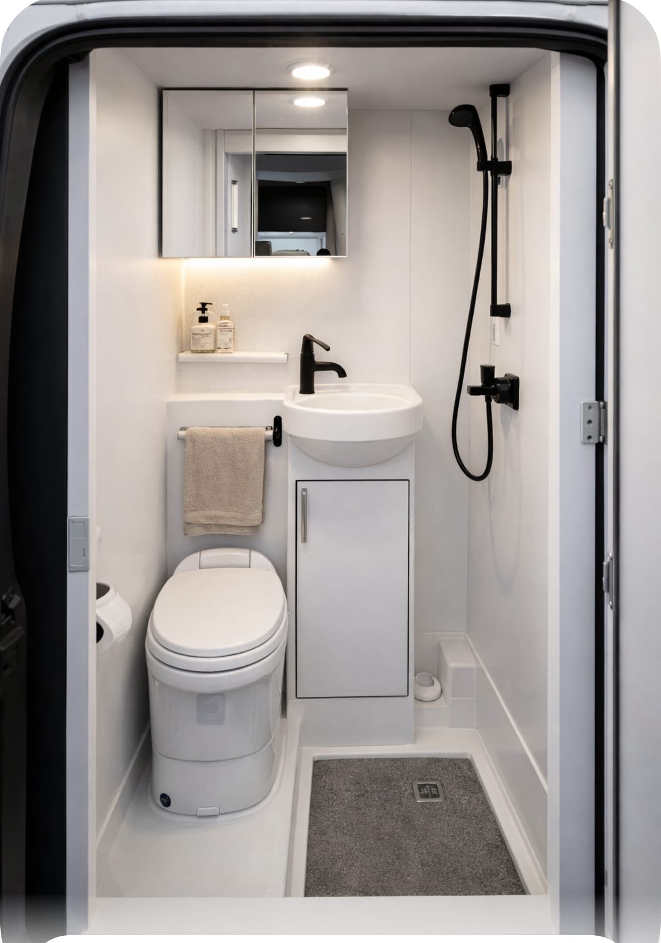 • Toilet, sink and shower